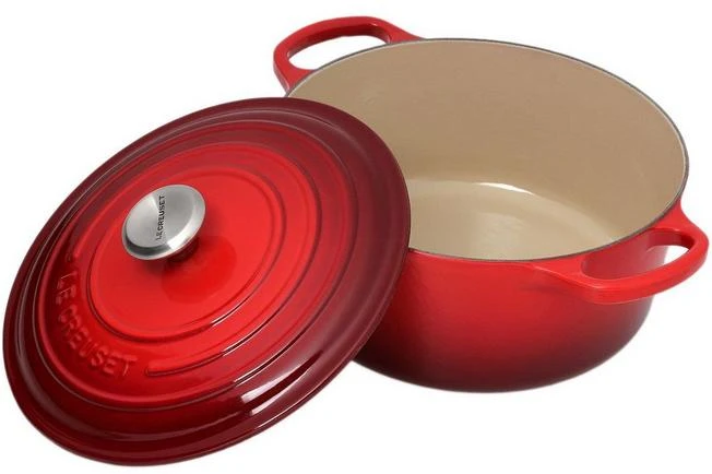 This Le Creuset pan from the Fonte enamelled series is made of solid cast-iron. A rock-solid quality pan, which will last generations. With this cast-iron pan you can do an awful lot. Cooking, roasting and stewing on all types of heat sources. Baking in a regular oven, on coal or even on a wood-fired oven. Even cakes and oven dishes can be prepared pan. The pan can also be used to keep dishes cool in the refrigerator or freezer. For example, the pan can be used to as a serving dish for chilled foods on a hot summer day.