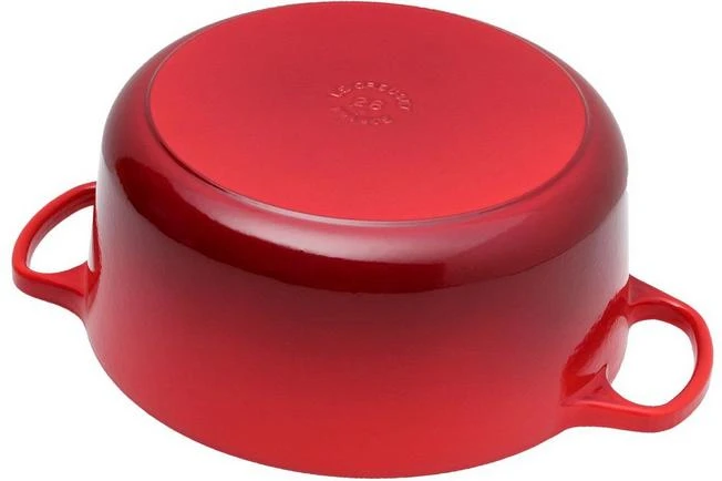 This Le Creuset pan from the Fonte enamelled series is made of solid cast-iron. A rock-solid quality pan, which will last generations. With this cast-iron pan you can do an awful lot. Cooking, roasting and stewing on all types of heat sources. Baking in a regular oven, on coal or even on a wood-fired oven. Even cakes and oven dishes can be prepared pan. The pan can also be used to keep dishes cool in the refrigerator or freezer. For example, the pan can be used to as a serving dish for chilled foods on a hot summer day.