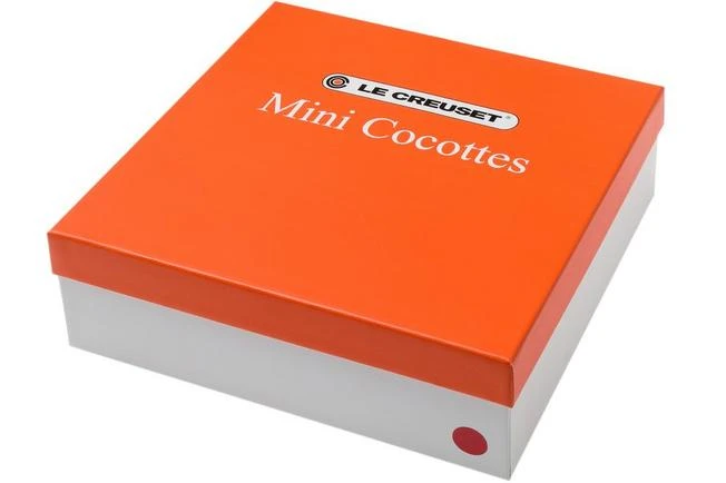 This Le Creuset mini cocotte set is a nice addition for in your kitchen. In these four cute little cherry-red pans you can serve the most delicious soups, small casseroles, sauces or creme brulee. The cocottes have a 10 cm diameter, a content of 0.25 litre and are made from ceramics. As such they are not suited for use on a cooking hob, but can handle the oven (max. 260 degrees C), microwave or under the grill.