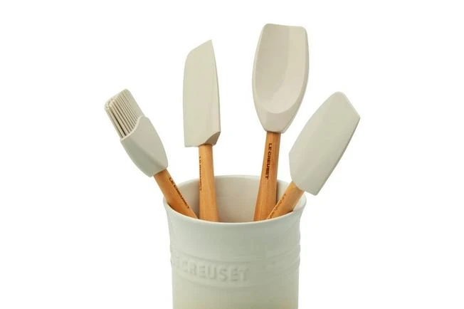 With the Le Creuset Premium Meringue spatula set you have all the most important kitchen tools within reach on your countertop. The spatulas are suitable for all types of pans. This sillicone is heat-resistant up to 205°C. , and it does not scratch non-stick coatings, polished surfaces or enamelled pans. The sillicone heads are removable, so you can put them in the dishwasher. The wooden handles are not dishwasher safe. Clean and dry these by hand.