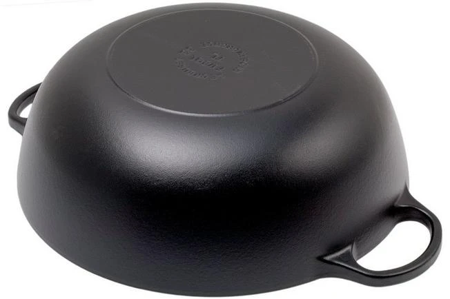 This Le Creuset cocotte from the Fonte enamel collection is made from solid cast iron. It is a robust, top-quality pan that will last for generations. The pan has a diameter of 24 cm. There are so many things you can do with this cast iron pan. You can cook, fry, grill and stew on all kinds of cooking hobs. It can bake in the oven, over an open flame or even in a wood-fired oven. You can even prepare cakes in this enamel pan. The pan is also great for keeping dishes cool in the fridge or freezer. You could also use it as a serving dish for chilled food on a hot summer’s day.