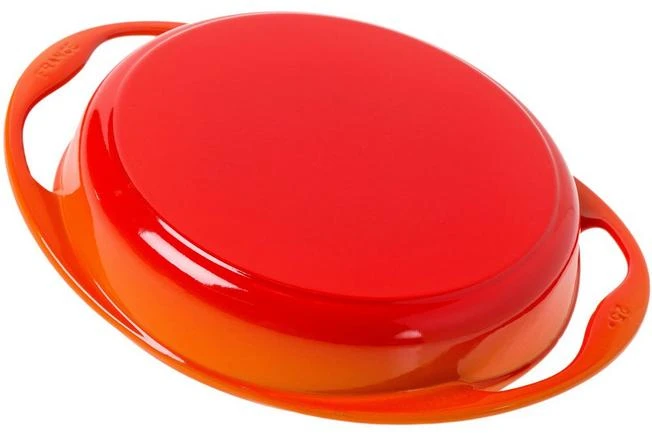 With the orange-red le Creuset Tatin dish preparing the perfect tarte tatin will be a piece of cake. This dish is made from enamelled cast iron. Because of the design of the handles you can easily flip the tarte tatin. A decent, top-quality pan that will last for generations. This pan has a diameter of 25 cm and a content of 1.8 litres. You can do a lot with this cast-iron pan. In addition to preparing the perfect tarte tatin you can also use this dish to prepare delicious cakes and desserts. Even casseroles are an option! You can also use the dish to keep dishes cool in the fridge or freezer. As such you could, for instance, use it as a serving dish on a hot summer’s day.